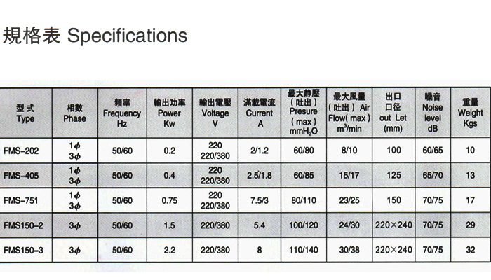 3、风机1.1kw以下型号可以全压使用。